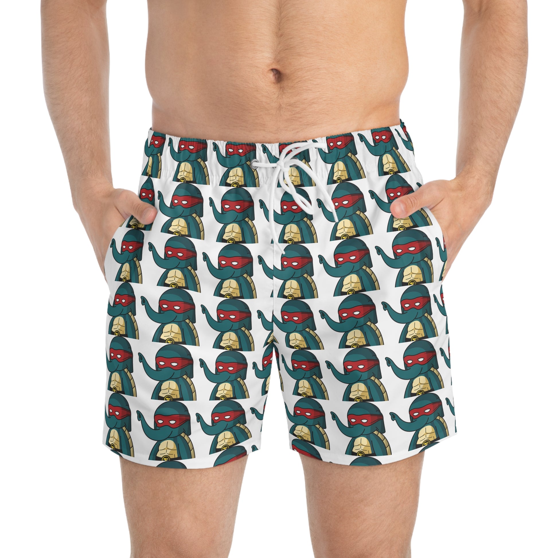 Nothing can swoosh down the summer heat like a dive into the sea - or into the nearest pool. These personalized swim trunks are here to take on your exclusive designs and most playful patterns. With an all-over-print capability accompanied by vivid colors, these swim trunks help you conquer the summer season in custom style.